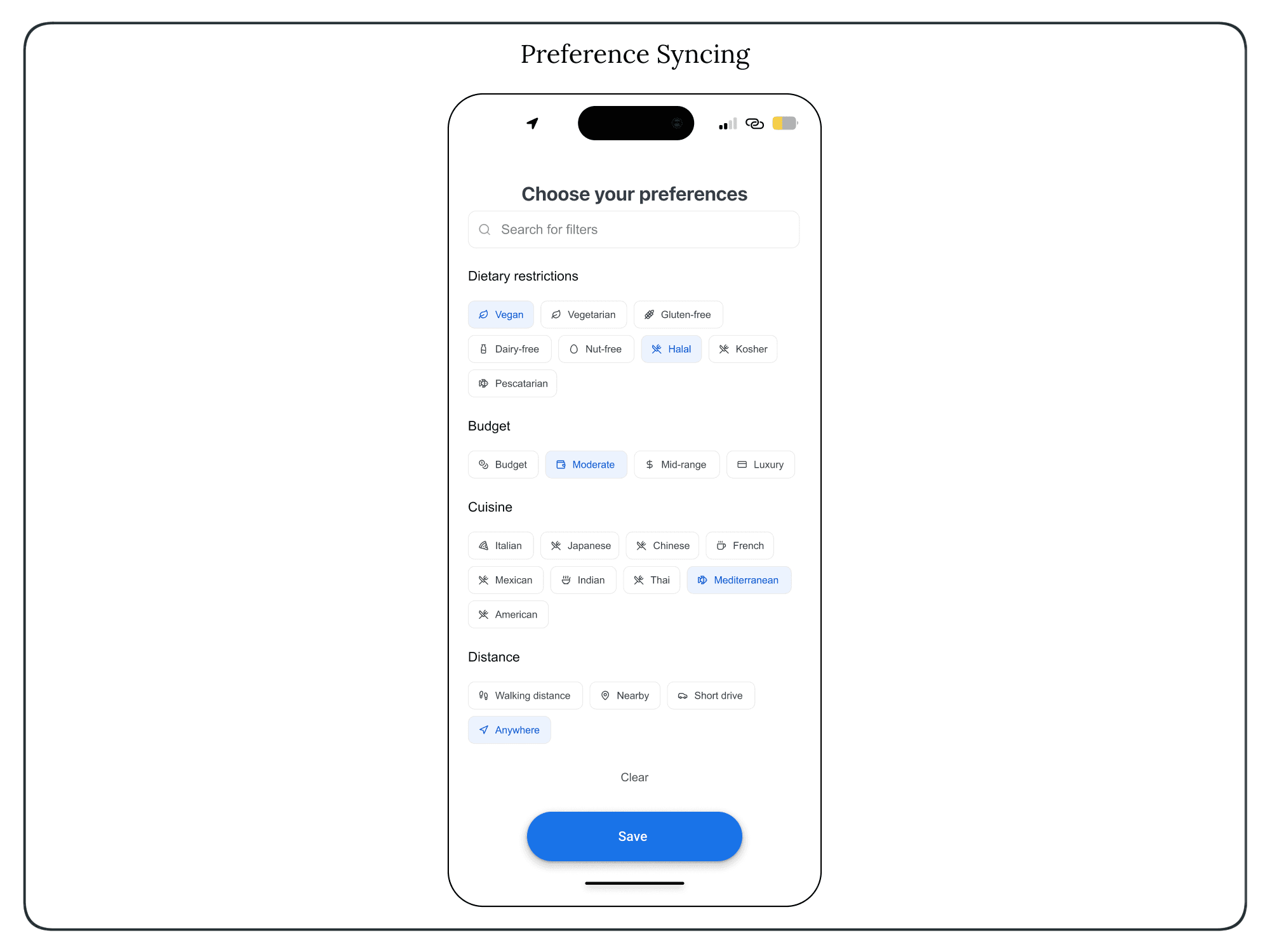 Users input dietary, budget, and distance preferences once.