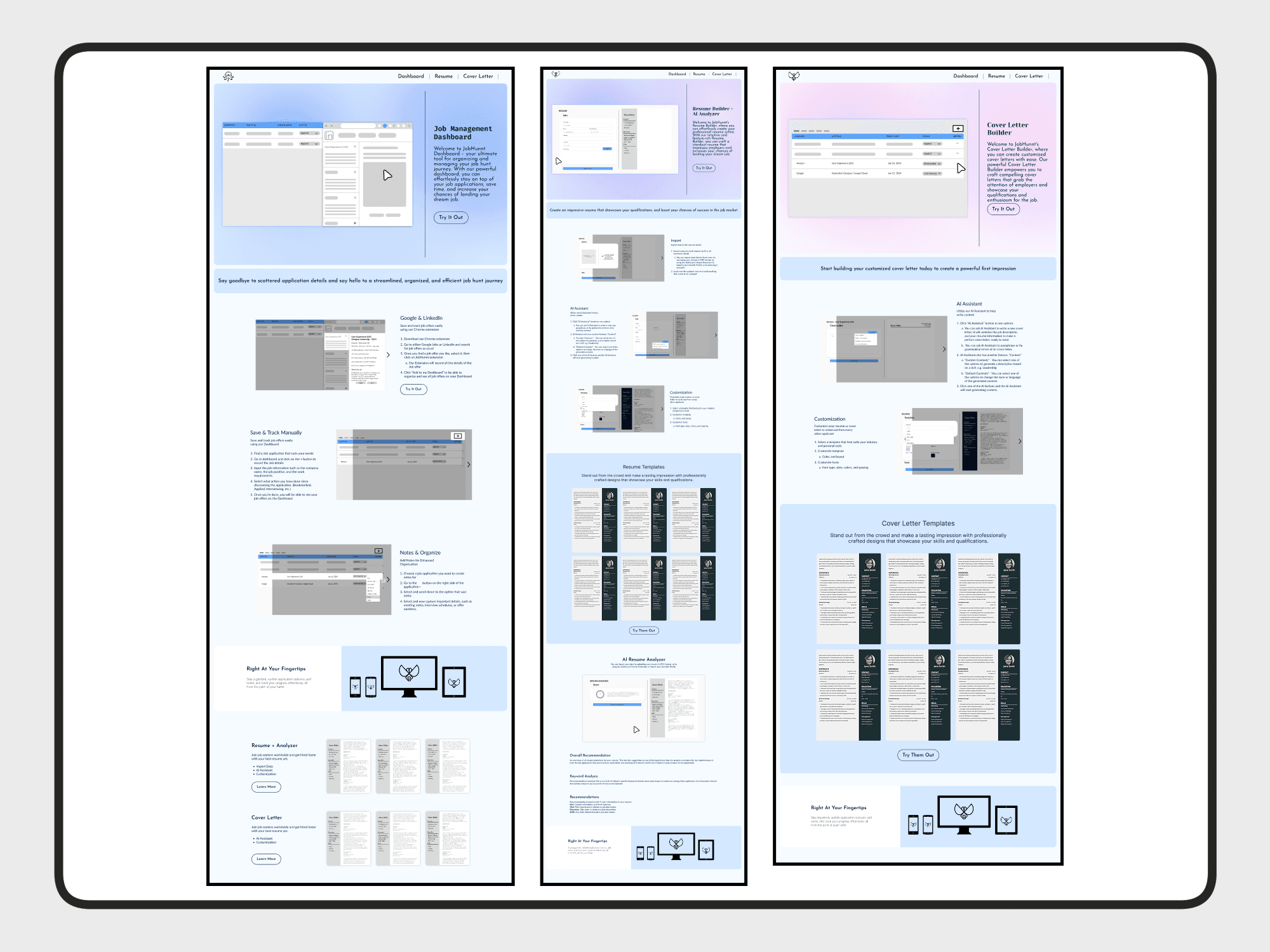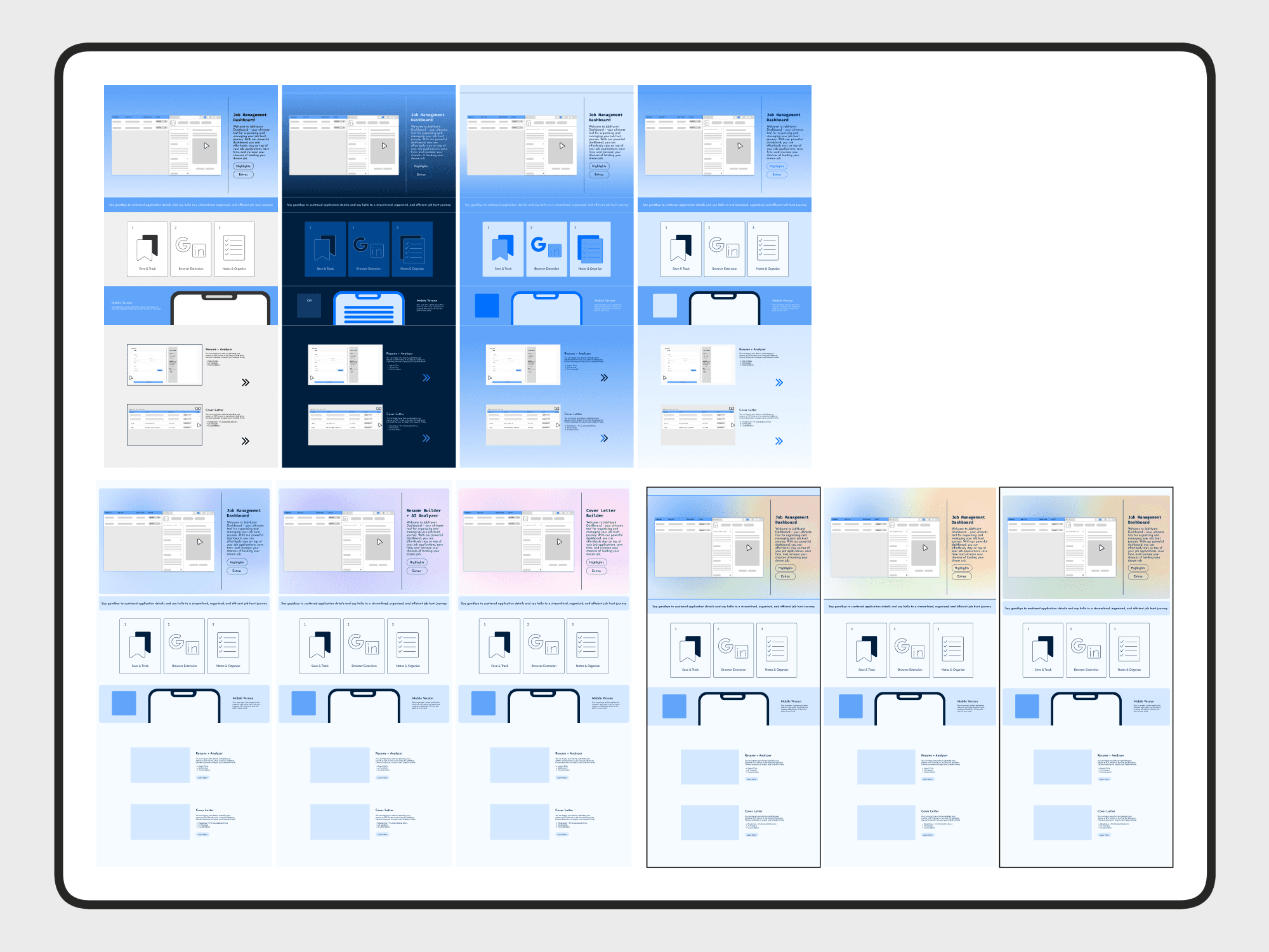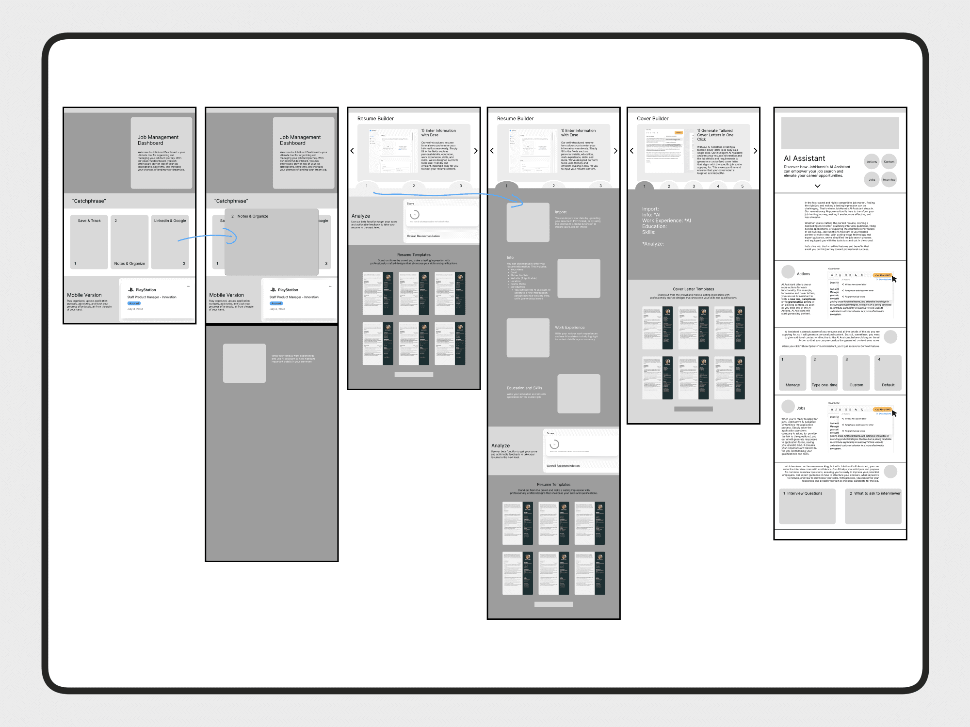 Wireframes explored: