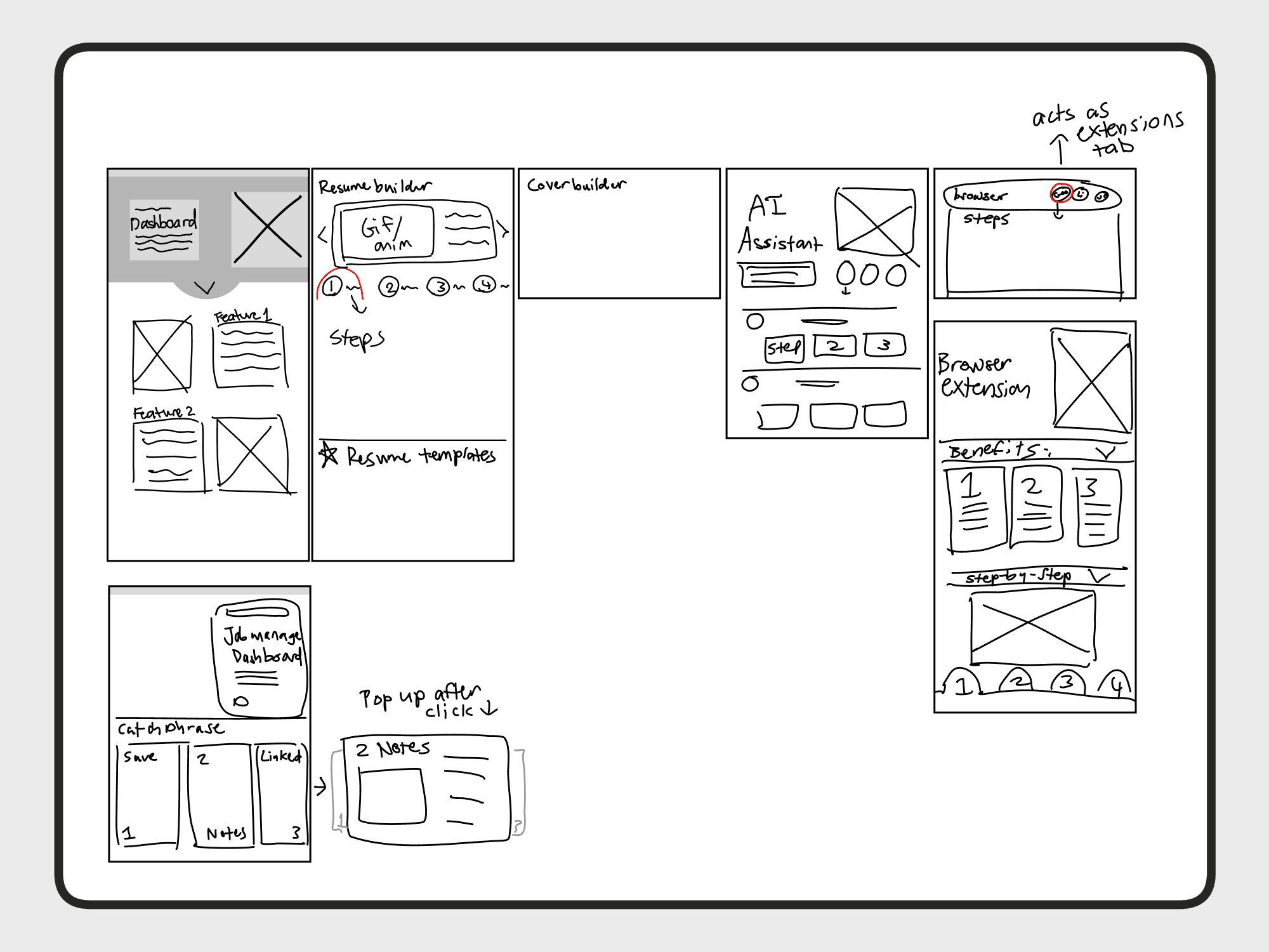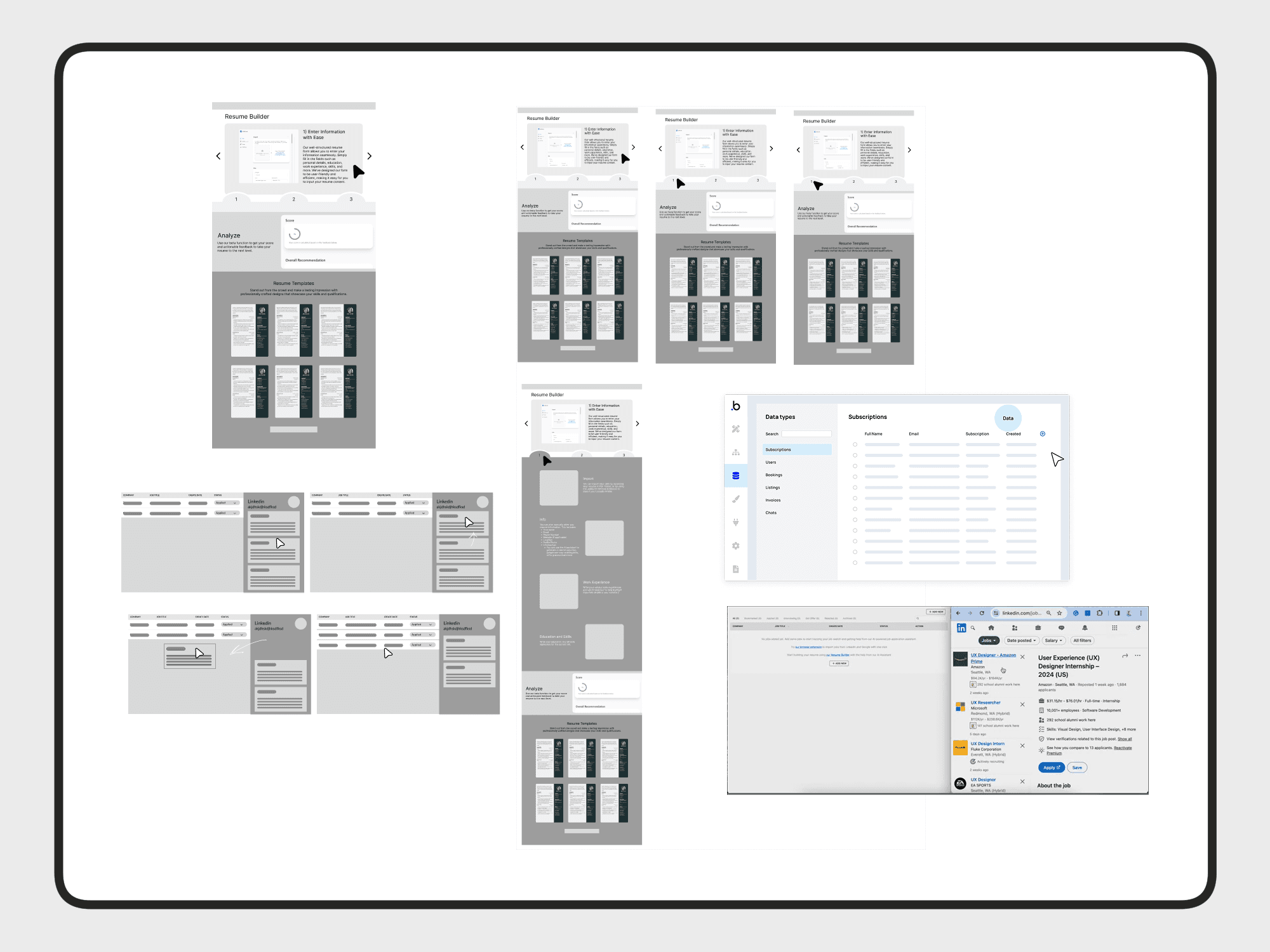 I worked on 3 feature pages, "Job Management Dashboard", "AI-Powered Resume Builder", and "AI-Powered Cover Letter Builder".