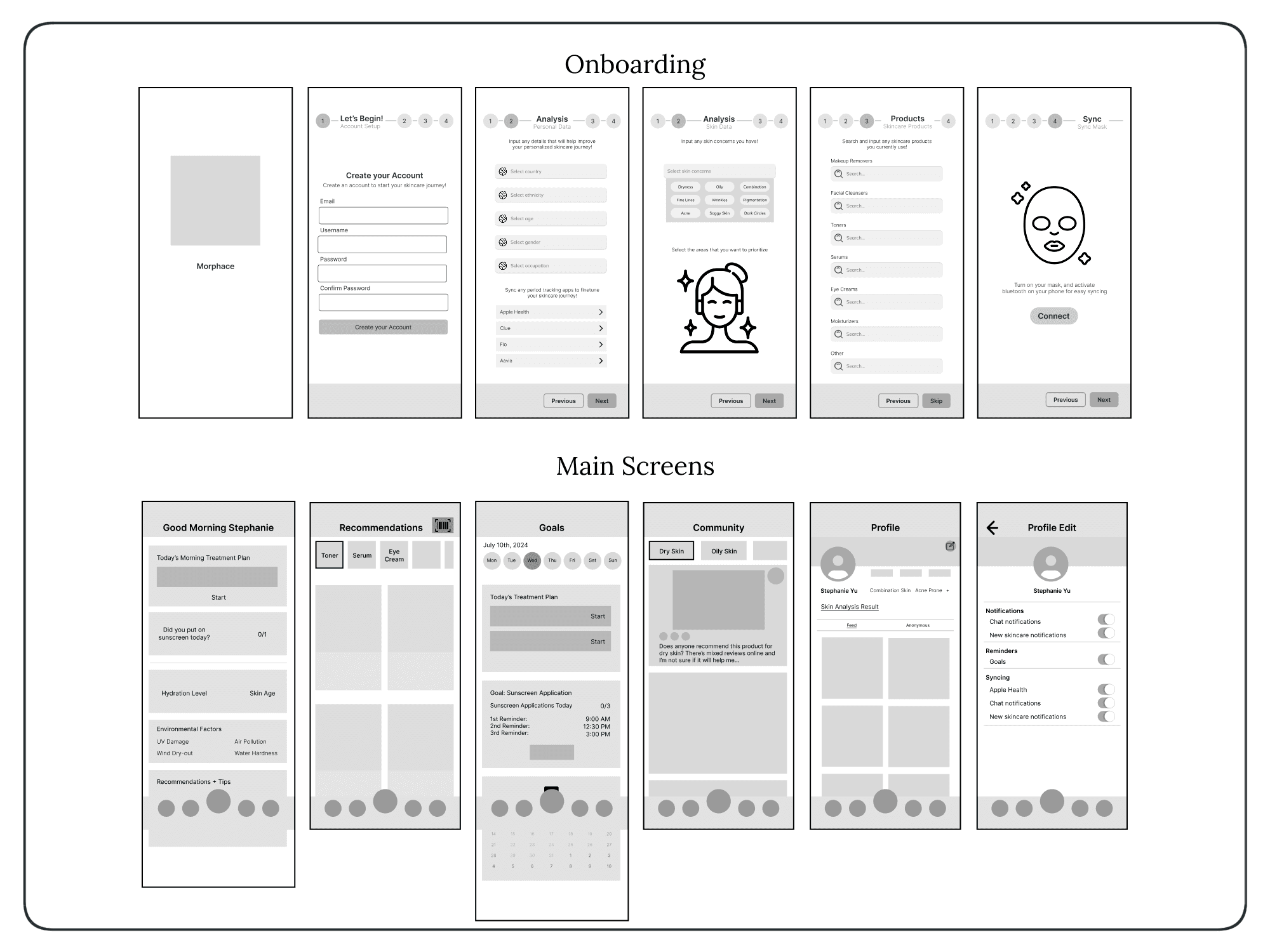 As the Morphace project continues to evolve, I’ve had the opportunity to refine and enhance my approach to UX/UI, illustration, and animation. Building on the initial research and design work, I’ve focused on improving user engagement through more intuitive interactions, streamlined onboarding, and refined visual elements. Iterating on previous designs based on user feedback has reinforced the importance of adaptability and continuous learning in the design process. Additionally, as the product moves closer to launch, collaborating with developers and stakeholders has deepened my understanding of technical feasibility and real-world implementation. This experience has not only strengthened my problem-solving skills but also reaffirmed my passion for creating user-centred designs that seamlessly blend functionality and aesthetics.